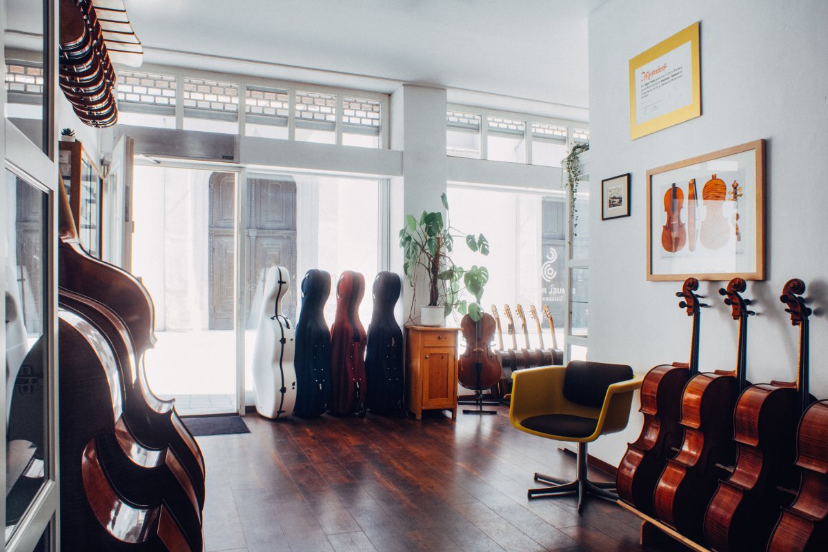 Wir bieten Ihnen nun ein riesiges Sortiment hochwertiger Streichinstrumente zu Verleih und Verkauf an. Auf der über 130 qm großen Ladenfläche findet sich eine riesige Auswahl an Schüler- Amateur sowie Profi- Instrumenten. Nicht zuletzt die repräsentative Auswahl erleichtert die Suche nach dem richtigen Instrument, schließlich besitzt jedes seinen eigenen, individuellen Klangcharakter, der zur Persönlichkeit des Spielers passen soll.